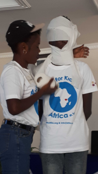 Zu oft mussten Mädchen wegen Schwangerschaft oder Heirat vorzeitig abbrechen. (Die malawische Gesellschaft akzeptiert keine Schwangeren in der Schule.) Andere bestanden wegen zu geringem schulischem Engagement oder zu viel Ablenkung in der Pubertät den Abschluss nicht. So mussten wir die Erfahrung machen, dass nicht alle bedürftigen Jugendlichen die gleiche starke Haltung gegenüber Bildung haben. Was ihnen fehlt sind moderne ermutigende Leitfiguren in ihrem Vertrauenskreis. Daher leitet KfKA nun regelmäßig Gruppenreffen ein, die den Jugendlichen einen Austausch ermöglichen, sie aber auch aufklären und inspirieren sollen. Dazu werden u.a. lokale Präventionsorganisationen zur Unterstützung eingeladen. Dank Sachspenden aus Deutschland konnten wir den Jugendlichen schon viel Nützliches, wie persönlich bestückte Waschtaschen, Hygieneartikel und diverse Schulmaterialien übergeben.