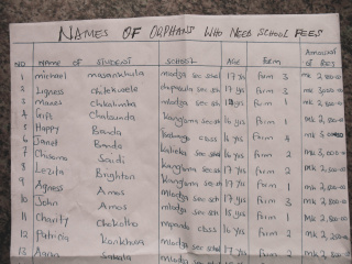 So wurden noch am selben Tag in Zusammenarbeit mit dem Waisenhausdirektor Lameck Mandevu die 20 ärmsten Jugendlichen des Waisenhauses genannt.. Es war herzerwärmend, wie positiv überrascht und zugleich sehr dankbar die Reaktionen dieser ersten 20 Schüler waren. Einige von ihnen mussten aus Geldmangel schon seit Jahren mit der Schule pausieren, ein Zustand, der in Malawi umgangssprachlich „just staying“ genannt wird.